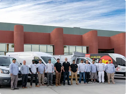 We don't do vague timeframes. From the moment you call to the moment our certified team knocks on your door: 45 minutes maximum. Anywhere in the Coachella Valley.